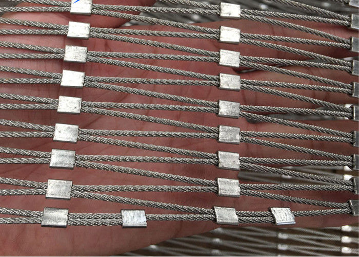 2.Malla con virolastiene las mismas propiedades físicas que la malla anudada, la única diferencia está en el estilo de combinación, el cable de acero inoxidable se combina con las férulas que están hechas del mismo grado de acero inoxidable.