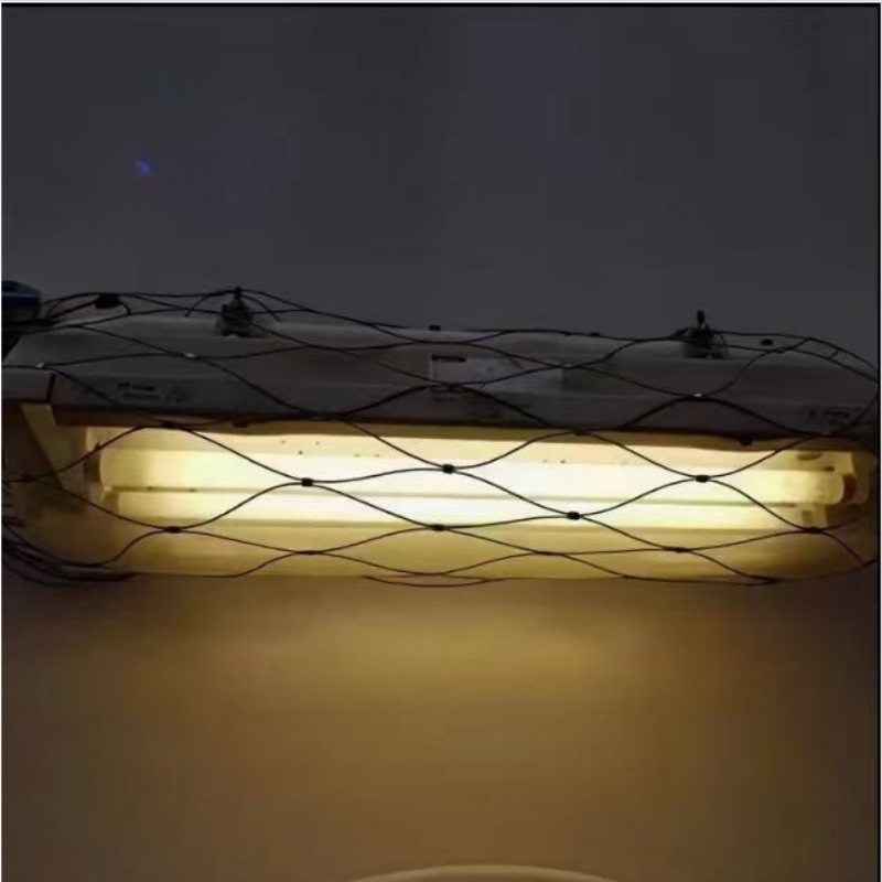 Heavy Duty Chandelier Anti-Drop Net Bag supports customized design: flexible rope nets are used to fit the contour of crystal chandeliers, and thin mesh covers are used for hidden installation of ceiling lamps. It provides fixing methods such as screw buckles and magnetic attraction, which are suitable for different ceiling materials like gypsum boards and concrete. It is applicable in scenarios including homes, hotels, and cruise ships.